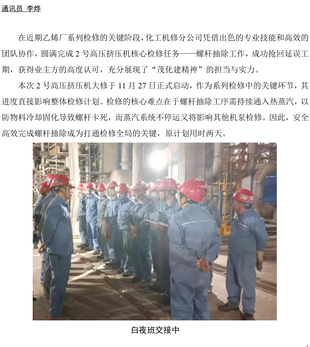 創新方法破解檢修難題,化工機修分公司三小時攻堅獲贊譽