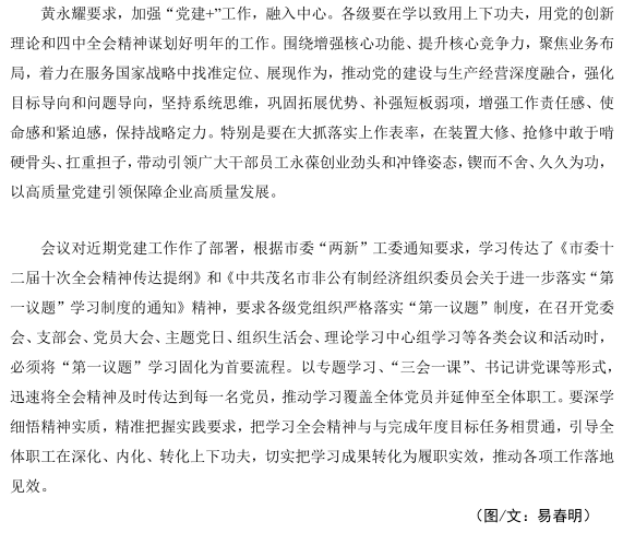 集團公司召開支部書記會議 學習貫徹黨二十屆四中全會精神宣講動員