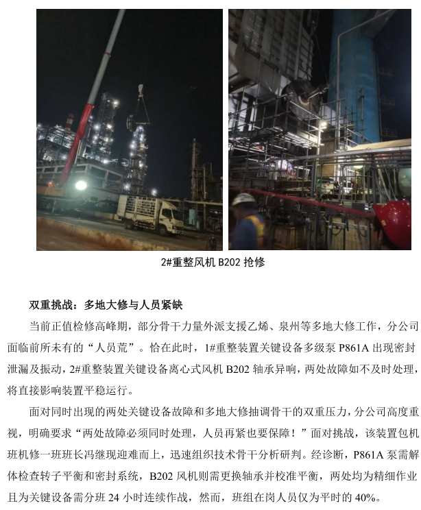 煉油機修分公司重油芳烴部 B202、P861A 搶修紀實