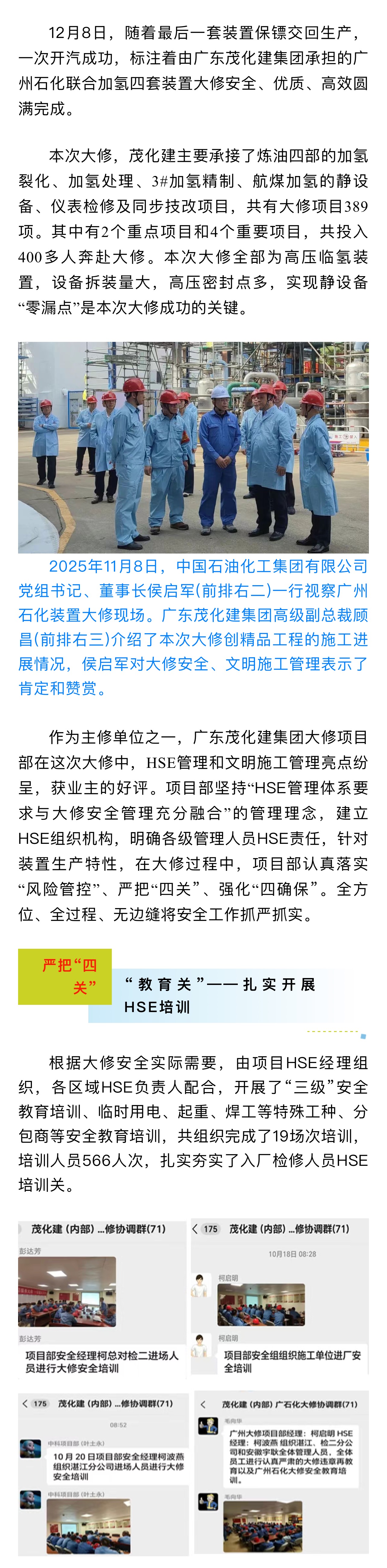 嚴把“四關” 強化“四確?!?| 廣東茂化建集團圓滿完成廣州石化大修