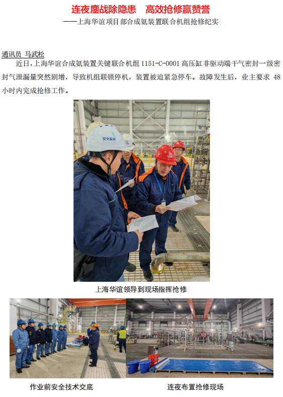 上海華誼項目部合成氨裝置聯合機組搶修紀實